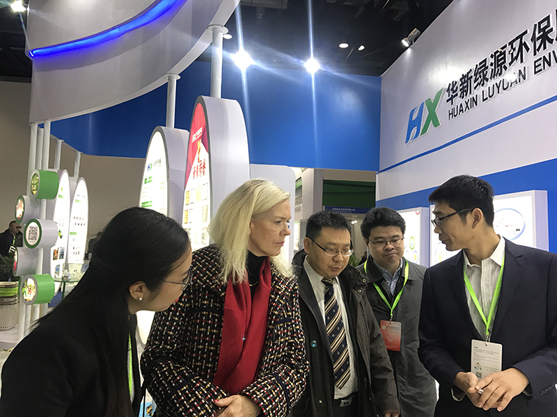 華新綠源環(huán)保股份有限公司應(yīng)邀參加此次展會(huì),展會(huì)期間,迎接了 第十屆全國(guó)人大常委會(huì)副委員長(zhǎng)顧秀蓮、中國(guó)循環(huán)經(jīng)濟(jì)協(xié)會(huì)副會(huì)長(zhǎng)兼秘書長(zhǎng)趙凱、國(guó)家發(fā)展改革委環(huán)資司副司長(zhǎng)郭啟民、瑞典駐華大使林黛安(Anna Lindstedt)等各界領(lǐng)導(dǎo)或人士參觀指導(dǎo)。